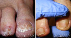 Capable of superheating skin tissue beneath the toenails, the Aerolase laser causes the coagulation of soft tissue affected with fungal material. With its deep heating power and short procedure time, this laser is highly effective for even the most troublesome nails.